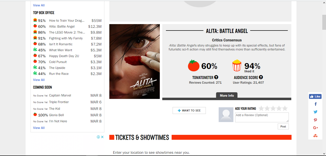 “Alita: Battle Angel” is the latest big budget, young adult sci-fi films to not do well critically or commercially. Despite the fans liking it this movie only gross $280 million from $170 million budget. I felt like “Alita: Battle Angel” tried too hard to recreate the success of “The Hunger Games.” While it might have worked in 2012, I think that today’s audiences are bored of the generic “chosen one” teenaged protagonist who must fight to overthrow a dystopian government, all while having to deal with a ham-fisted romantic subplot that does nothing but drag the plot down. That being said, I did quite enjoy this movie actually as someone who read the manga. However, I in this really rare occasion hope that James Cameron did change the story of “Alita: Battle Angel”. I usually hate when hollywood change stories of the source material but to be honest the source material is not really the best cyberpunk manga. And the manga is good in it’s time however it didn’t really hold up in today standard. If i have to give it a score it is 7/10.
