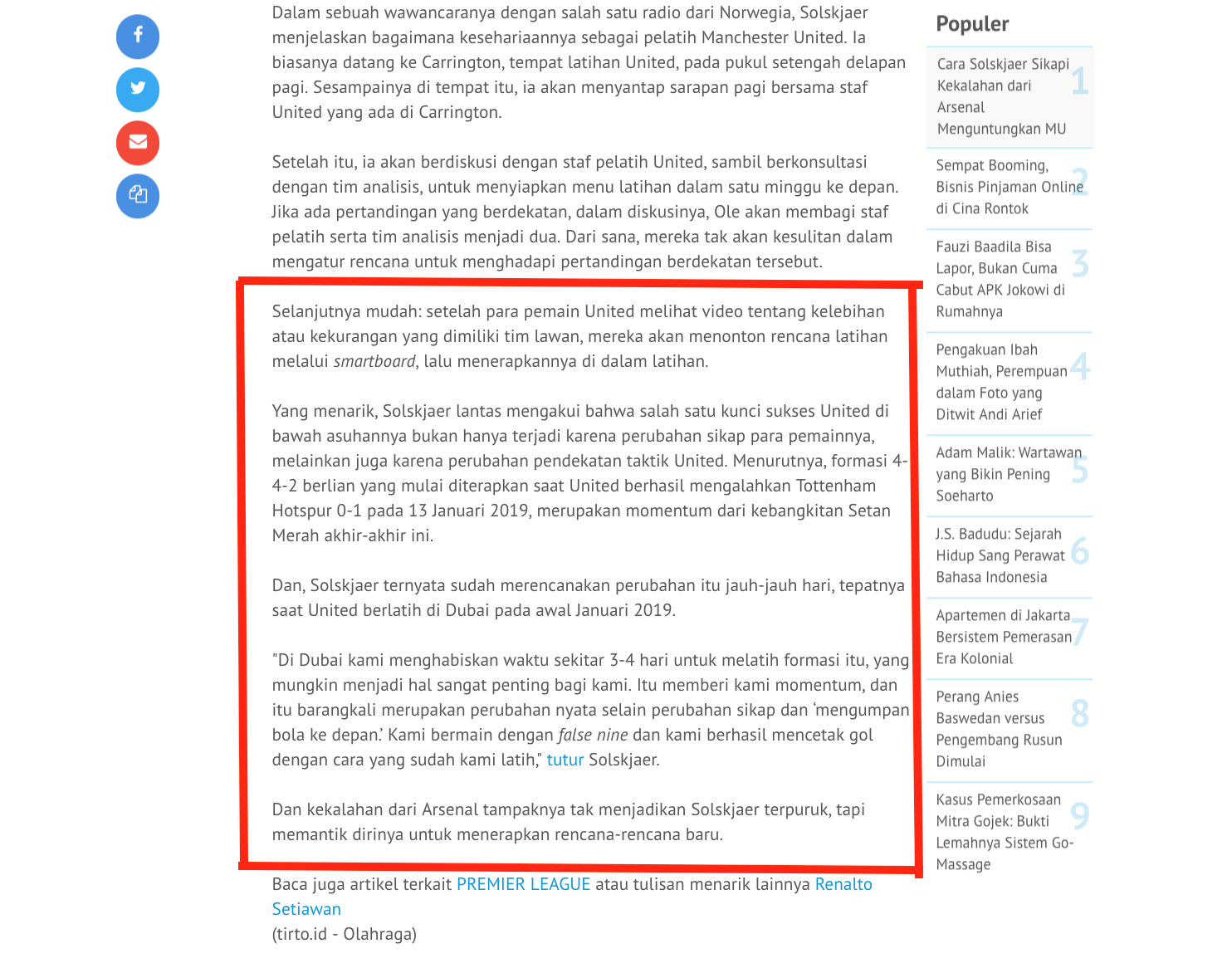 The consistency of tirto.id site is quite excellent. The flow of the content is very sequential and settled perfectly, which makes the article is not boring to read for the readers. The writers make each paragraph compact and direct, so it is not long-winded (because most of the content are news article). The contents also have headings and small headings that makes the page looks more interesting to read. But I personally think it would be better if the writers could make the quotation with a different font type and size, so it would make the page better.