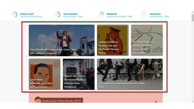 The site organization of tirto.id is very well-organized. We can easily choose the category of article that we want to read, by clicking the banners on the centre of the page. The banners show the headlines and pictures, and the contents are very structured so the readers can easily find specific contents to read even they do not use the search engine of the article. Not forget to mention, the website has multiple widgets to help the readers navigate the page